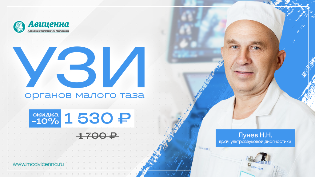 В клинике «Авиценна» вы можете пройти УЗИ органов малого таза у Николая Николаевича Лунева – врача с 43-летним стажем – и получить скидку 10% до 15 декабря 2025 года.