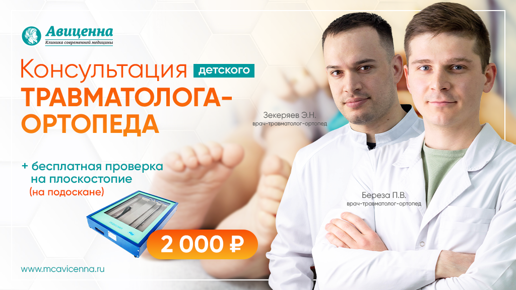 В клинике «Авиценна» мы предлагаем бесплатную проверку на плоскостопие в подарок при консультации детского травматолога-ортопеда!