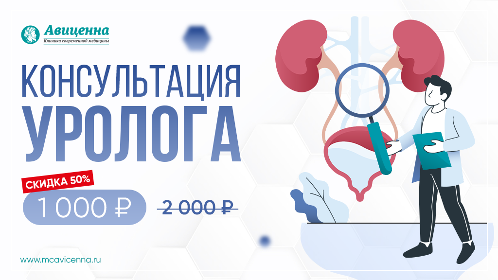 До 15 декабря в клинике «Авиценна» действует акция: консультация уролога всего за 1000 ₽ вместо 2000 ₽.