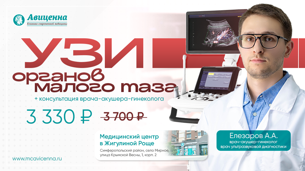 Консультация с УЗИ органов малого таза — 3 330 ₽ вместо 3 700 ₽.