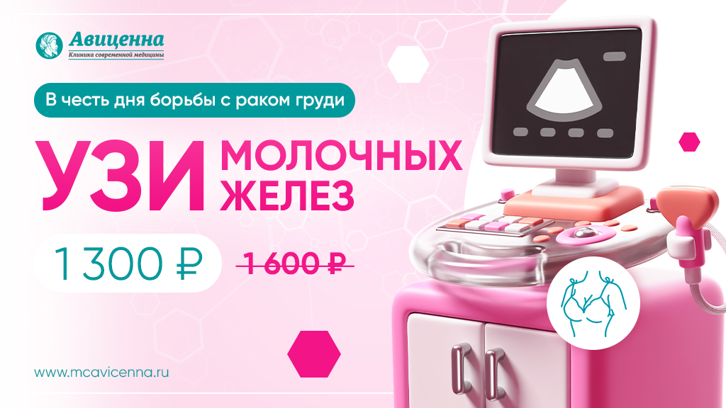 В клинике «Авиценна» до конца октября действует специальное предложение: УЗИ молочных желез всего за 1300 рублей вместо 1600 рублей.